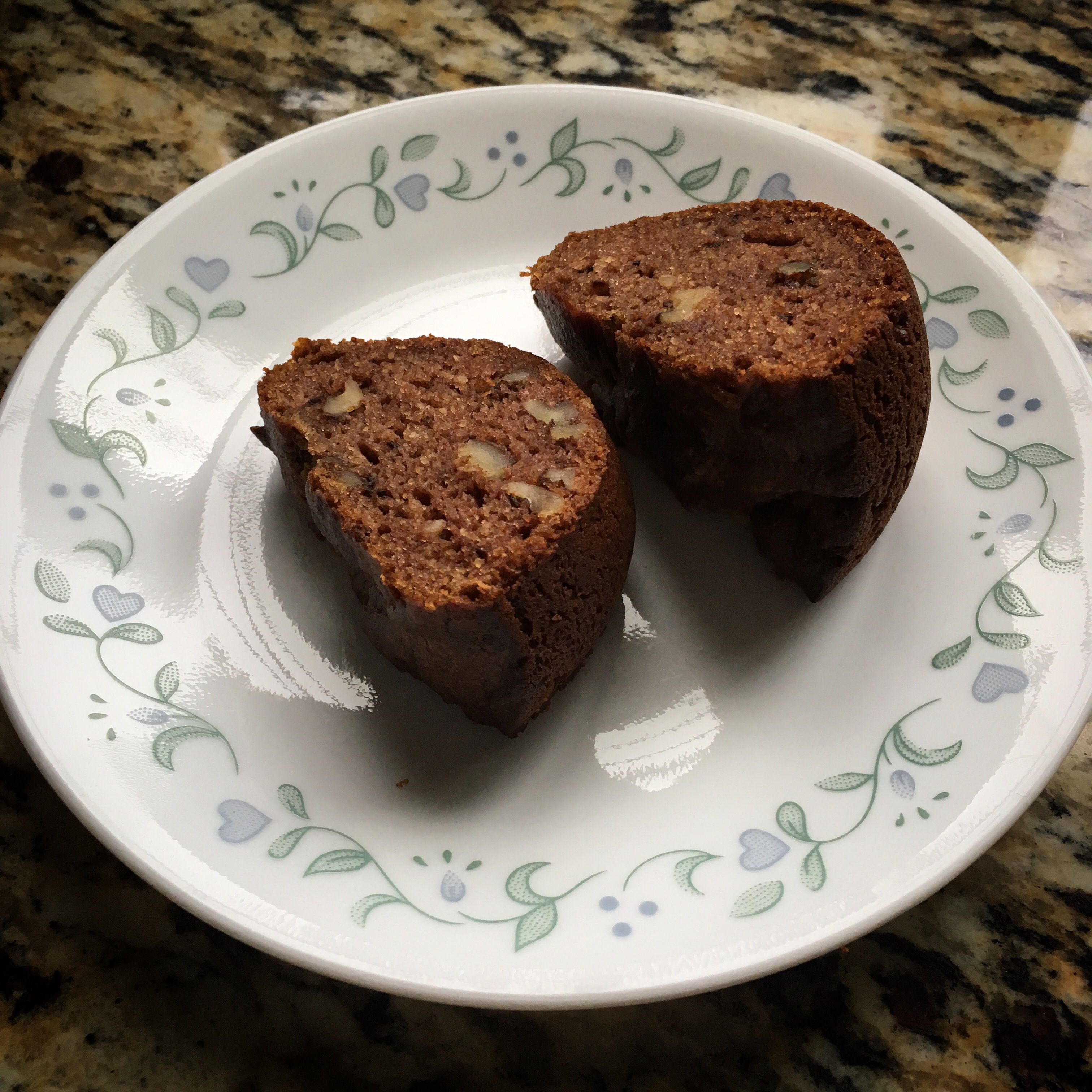 Then I made a paste of dates, milk and butter. To the dry ingredients, I added the wet, folded in chopped walnuts and realized the batter was too thick. So, I added a little water to thin it out and then poured the batter into a greased bundt pan. While the kids licked the batter clean from the mixing bowl, I shoved the pan into the oven and set the timer for 35 minutes.